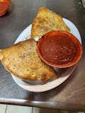 A savory snack! mozzarella cheese, pepperoni, and sauce, all wrapped in a crispy egg roll wrapper and then fried served with marinara sauce