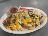 Crisp tortillas, onions, black olives, tomatoes, jalapeños, mozzarella, nacho cheese, with choice of chicken or beef. Salsa and sour cream served on the side