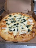 Mozzarella, ricotta & parmesan cheese, oregano, garlic oil.